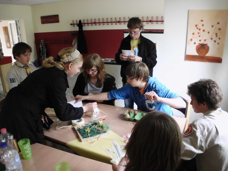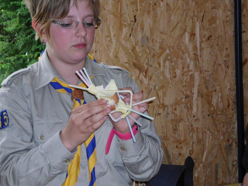 Baue mit 2 Blatt Papier, Strohhalmen, und Kreppklebeband eine Schutz für ein Ei, sodass es einen 5-Meter-Sturz überlebt.